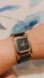 Elegant Nixon watch with a sleek black strap. Silver square case. Minimalist design.