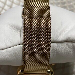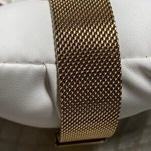 Powered by a Japanese quartz movement, water resistant to 50 meters. Fitted with the original gold-tone Milanese mesh bracelet and signed clasp.