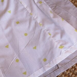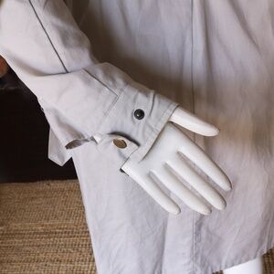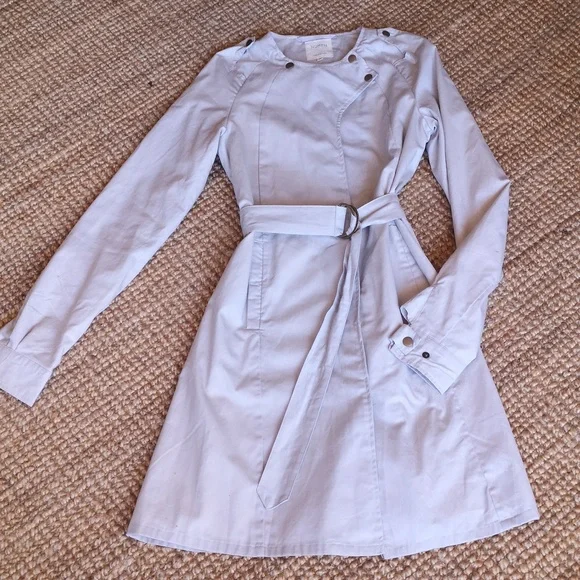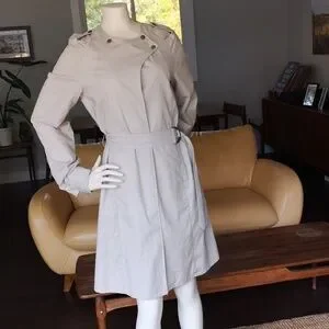 Funky lightweight cream-coloured cotton coat from Nümph. No, I'd never heard of the brand either (Danish apparently), but I love the label: 'Nümph. Make An Entrance'. Rounded neckline. Snap buttons. Fun lining covered in lime green geometric shapes. Size M; measurements in photos. In great used condition.