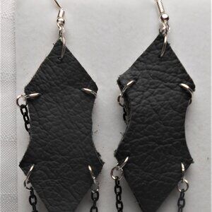 No. 763 Handmade earrings with leather pieces 2 1/2 inches long