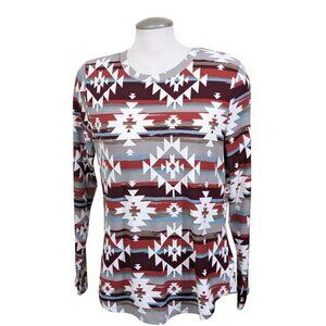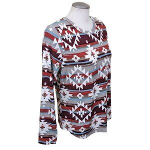 No Boundaries Aztec Print Womans Sz XXXL (21) Long Sleeve Ribbed Shirt Boho Fall