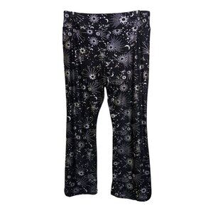 No Boundaries Juniors XXL Flare Pants Celestial Black Silver Foil Print Pull On