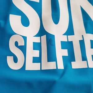 💥 1 small blue stain on the "Selfies" area, and 1 tiny pull inside the bottom are. All shown on photos.
