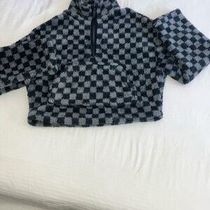 No Boundaries medium checkered black gray cropped Fleece Pullover