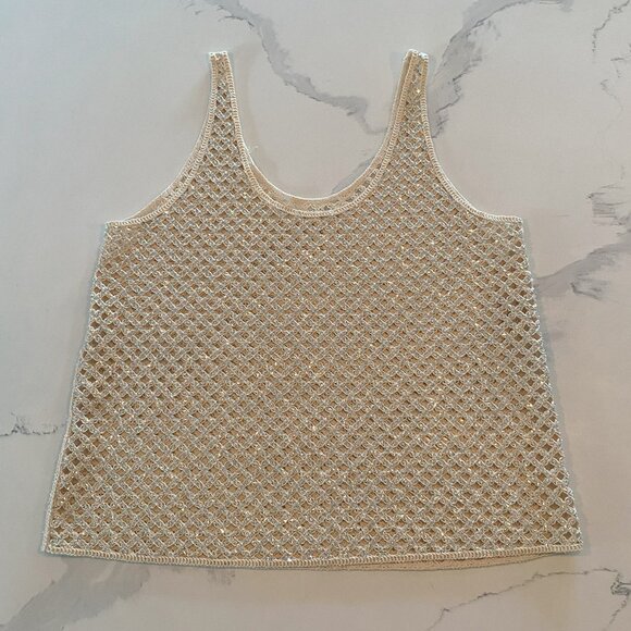 No tag - Zara - Textured, Beige & Silver, Knit-feel, Round Neck, Tank - Size M