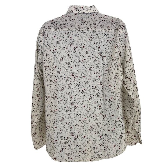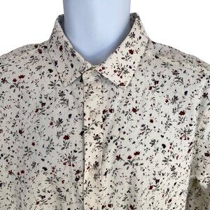 Floral Long Sleeve Linen & cotton blend ecru white Button-Up Shirt By NoCode - Size L