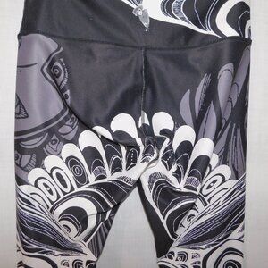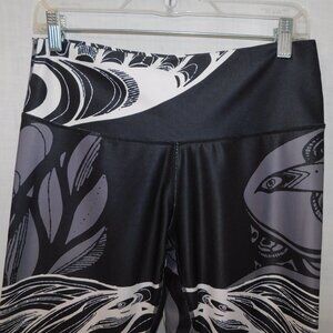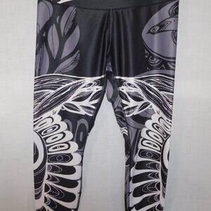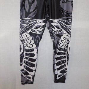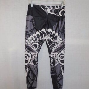 This pair of Womens Medium Nominou Black White Indigenous Native Full Length Leggings are in Excellent clean condition. Leggings are made in Canada by Canadian Designer. Leggings are 88% Recycled Polyester - 12% Spandex - Machine washable. Medium can fit size 8-12 . Perfect for casual wear or working out.