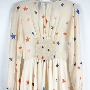 Nobody's Child Georgie womens dress in cream. Allover multicolor star print on midi dress. Balloon sleeve. Button leg slit. Lined. Womens size 6 Excellent used condition. No flaws detected