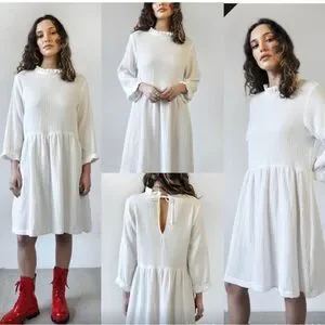This elegant white dress is perfect for any occasion. Its simple yet sophisticated design makes it a versatile addition to your wardrobe.
