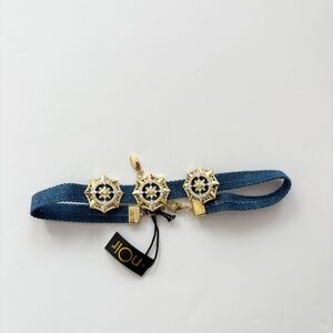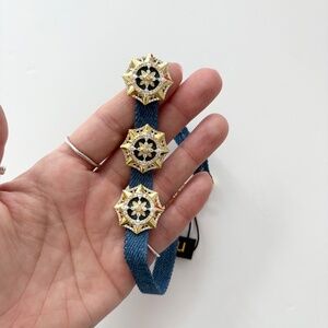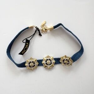Brass 14kt gold plated triple spike center statement pieces with cubic zirconia stone accents on denim choker New with tags Est. Retail 180$