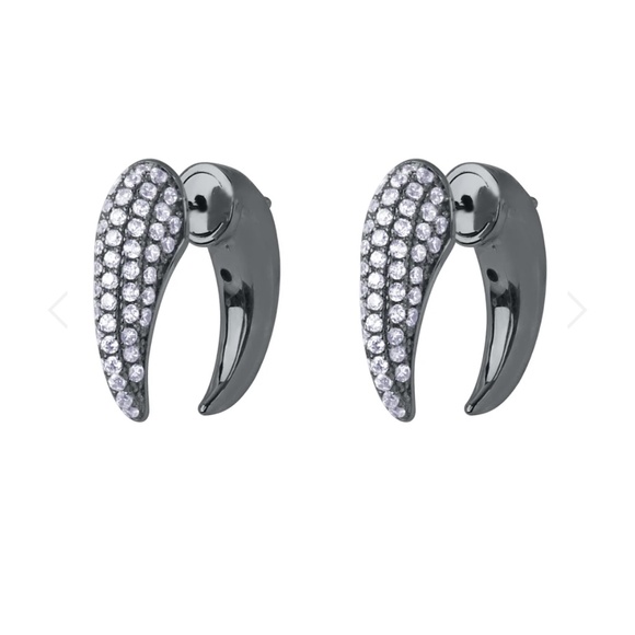 Noir NYC pavé gunmetal horn earrings