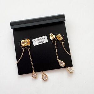 Teardrio double swinger earrings with CZ gem and gold plating