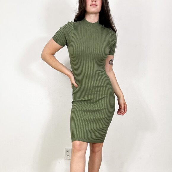 *Noise May Green Turtleneck Ribbed Midi Dress