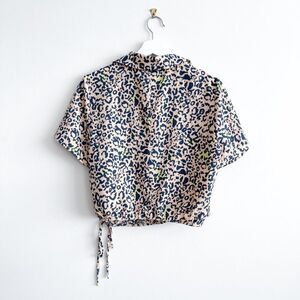 Noisy May - Clara S/S Wrap Crop Shirt (Hazelnut Leo) // Size Large // BNWT