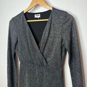 Noisy May Women's Silver Glitter Wrap Dress Small Black Silver Size Small. Holiday, New Years Eve, Formal Events