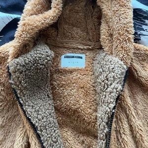 teddy zip through jacket in tan