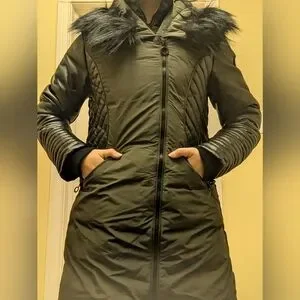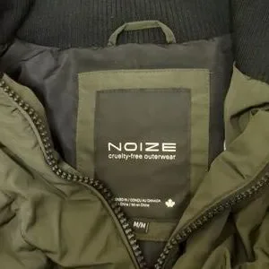 Green and black Jacket with Pleather sleeves. Cruelty-Free Excellent condition, like new