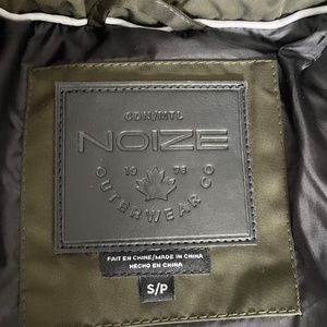 It's extremely warm/thick, has a double zip (a shorter inside zipper), thumb holes in the sleeves, the hood is very big, it doubles as a shawl collar.