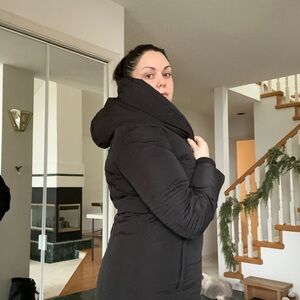 Beautifull and warm parka! Cruelty free and designed in Canada! Great oversized hood. Just snug on me now.