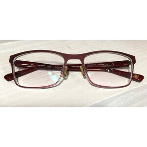 Sophisticated Nomad by Morel eyeglass frames featuring a rose red framewith white interior. Durable, lightweight design ideal for daily wear. Comes with a protective case.