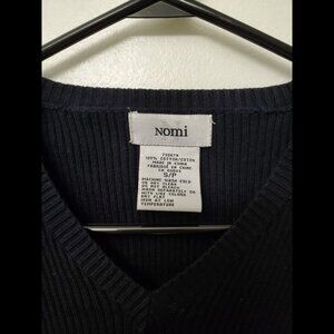 Nomi 100% cotton V-neck long sleave sweater in all black.
