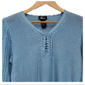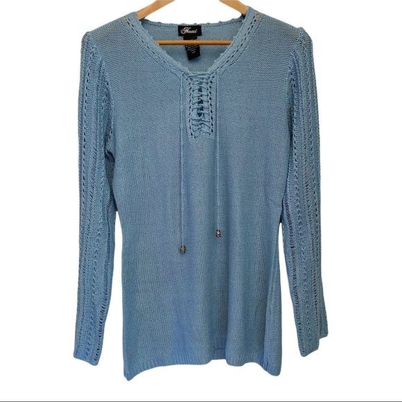 Nomi crochet knit long sleeve soft blue sweater acrylic blend size large VGUC