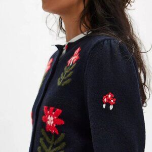 Your grandma’s favorite sweater, this charming cardi features super soft knit fabrication, a cropped, relaxed-fit silhouette, and sweet embroidered details, making it a whimsical addition to any wardrobe. Color is Midnight Bloom Combo. Size S.