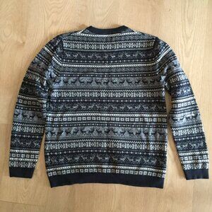 Unisex Navy/white, crew neck sweater in nordic winter theme with reindeer.