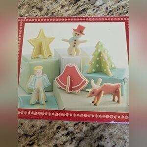 Nordic Ware 3D Cookie Cutters Stand Up Christmas Cookies Snowman Angel Reindeer. Clean and used once, Super fun.They are in the original plastic bag within the box. The Box in great shape with light storage wear.