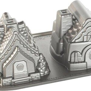 Put a fun twist on a classic tradition with this festive gingerbread house duet pan