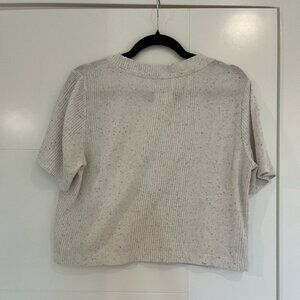 Super cute confetti cake like tee, soft, cozy! Cropped tee, slightly fitted but mostly boxy.