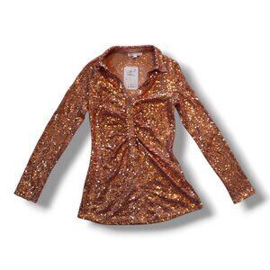 Nordstrom DR2 Sequin Ruched Long Sleeve Button Up Shirt