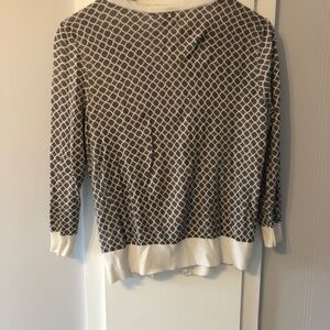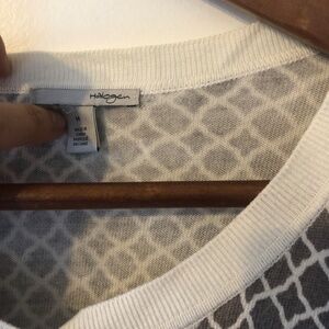Fitted grey and white button up cardigan from Nordstrom’s Halogen collection. The sleeves are 3/4th end before the wrists.