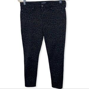 Liverpool Madonna Knit Cheetah Print Seamed Skinny Leggings in Brown from Nordstrom in Women's Size 8 (or 29). Slimming design and allover print. Stretch cotton blend fabrication. tonal topstitching. Faux front hand pockets. Function back pockets. Belt loops. Zipper fly and button closure. Cotton, lyocell, poly and spandex. Machine wash. Very good pre-loved condition. No visible flaws. Retails for $89 USD (~$124 CAD).