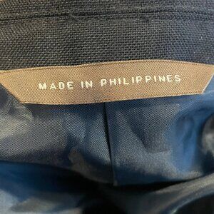 Features: notch collar, 2 metal button closure, lined, 2 flap pockets, 1 chest pocket, lightly padded shoulders, 3 metal buttons on cuff, back 9" single vent, business casual, dress blazer