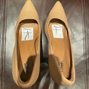 Supple faux leather adds a polished and sophisticated style to this pointed toe pump that sits on a sensible heel.
