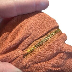 Nordstrom Good Luck Gem Solid Culotte Jumpsuit in Rust Peach Brown and Women's Size Small. Square neckline. Tie sash at waist. Exposed back zipper. Sleeveless. 70% cotton and 30% flex. Machine washable. Item is new with tags but note that the zipper was sticking at the bottom so I added some thread to keep it in place. No functional issues now but please see photos.