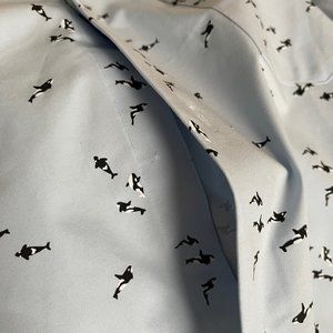 Dolphin print. 9/10 New Missing button, however, still has extra buttons attached.