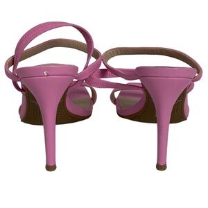 Nordstrom BP Vanessa Sandals in Pink Begonia and Women's Size 6.5. Retails for $64.95 USD (approximately $91 CAD). Slim straps distinguish a minimalist sandal lofted by a tapered heel for a style that will flawlessly complement your trendsetting looks. 4" heel. Synthetic upper and lining / rubber sole. Made in China. Brand new with tags but note there is small nick on back - see photos.