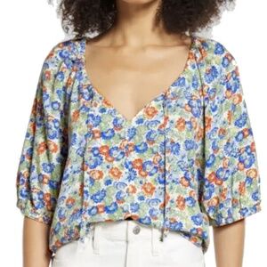 Nordstrom Treasure & Bond Blouse Top Viscose Floral Loose fitting Plunge Neck