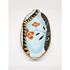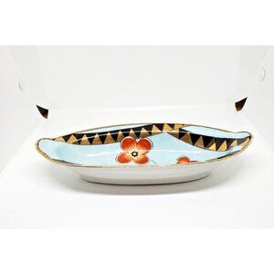 Noritake Celery Dish Hand Painted Gold Rimmed Handles Orange Flowers 7 .5 in VTG