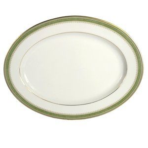 Noritake Enchantress Oval Serving Platter Green And Gold Rim Japan 2006.