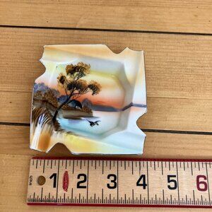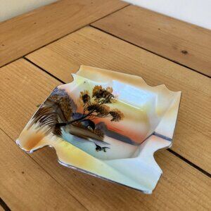 Noritake Hand Painted Square Ashtray Vintage Made in Japan Lake Sunset Design