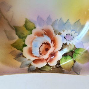 Noritake Japan hand painted porcelain trinket dish with floral design.