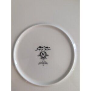 Noritake "Rothschild" Ivory China, Handled Cake Plate/Platter, Platinum Trim. In excellent used condition with no damage or defects noted aside from some very light knife marks on the surface. Measures 12" wide (handle to handle), 11" diameter.