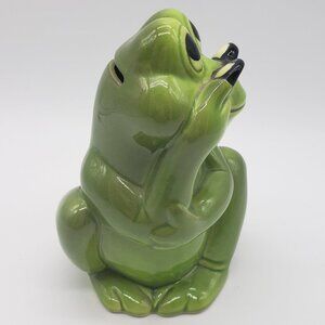 Noritake for Gift Craft MCM 1970s Ceramic Green Frog with Glasses Coin Bank