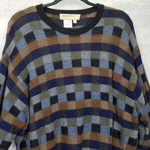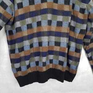 Norm Thompson Wool Sweater Men's XL Colorful 3-D Knit Square Pullover Crewneck
