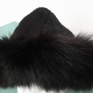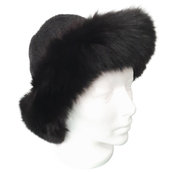 Norma Canada Vintage Dyed Fox Fur Winter Hat in Black. Wool & alpaca, 100% leather band & a braided trim around the soft fur brim.