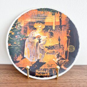 Warm, nostalgic collector plate from Norman Rockwell’s 1979 Christmas series, featuring a glowing fireside scene with a child and cat. From Knowles, in collab with the Rockwell Society of America. Beautiful condition. Not for food use.