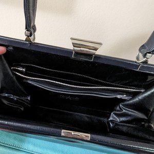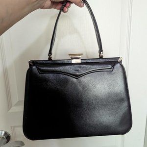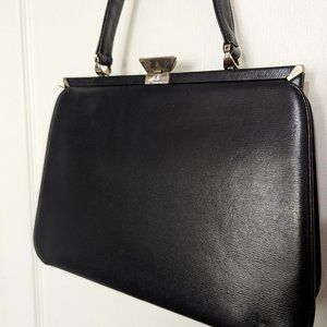 Normandie Vintage Leather Satchel - Black, Silver Clasp - In Very Good Condition (zipper and clasp are functional) 12" x 9"